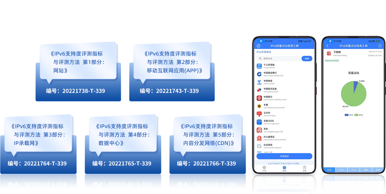 按照国标测试标准和测试流程,为用户提供专业化的APPIPv6支持度评测,提供准确、权威的测试结果