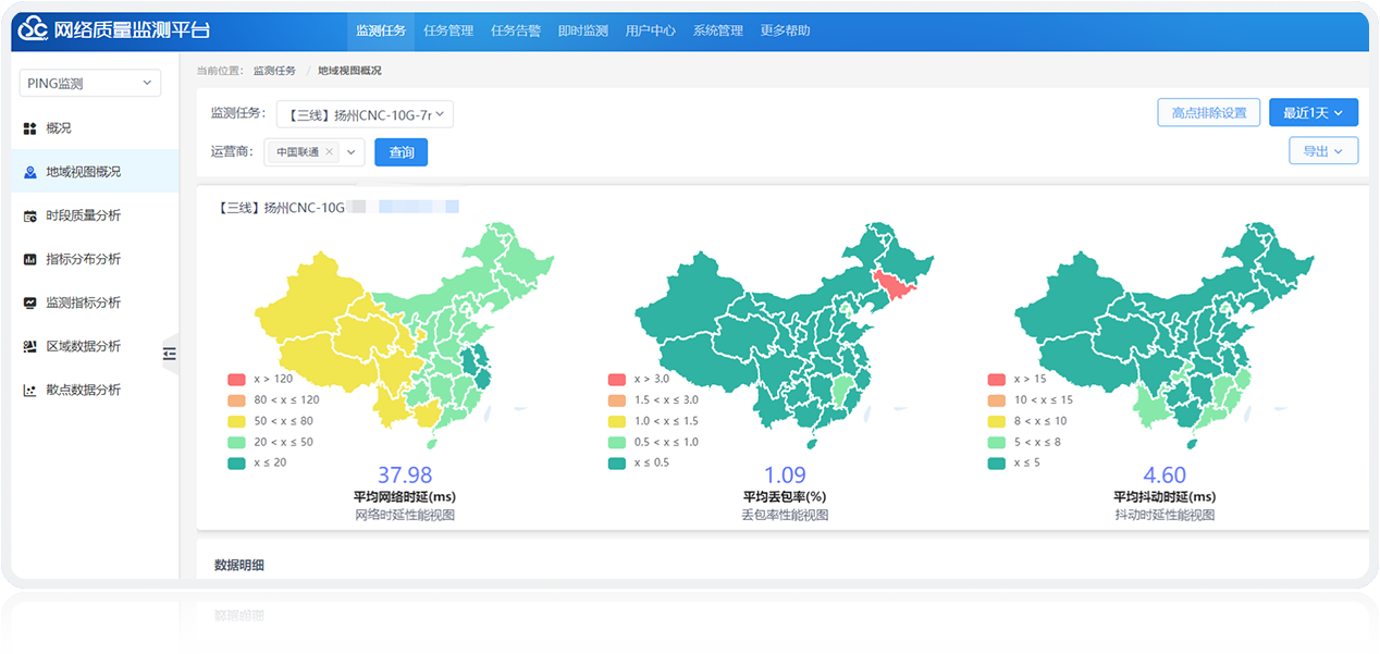 ● 全网部署千万级监测节点,可对互联网业务进行常态化、精细化仿真测试,分析结果高度可视化,自动感知性能劣化,在用户投诉之前产生预警。