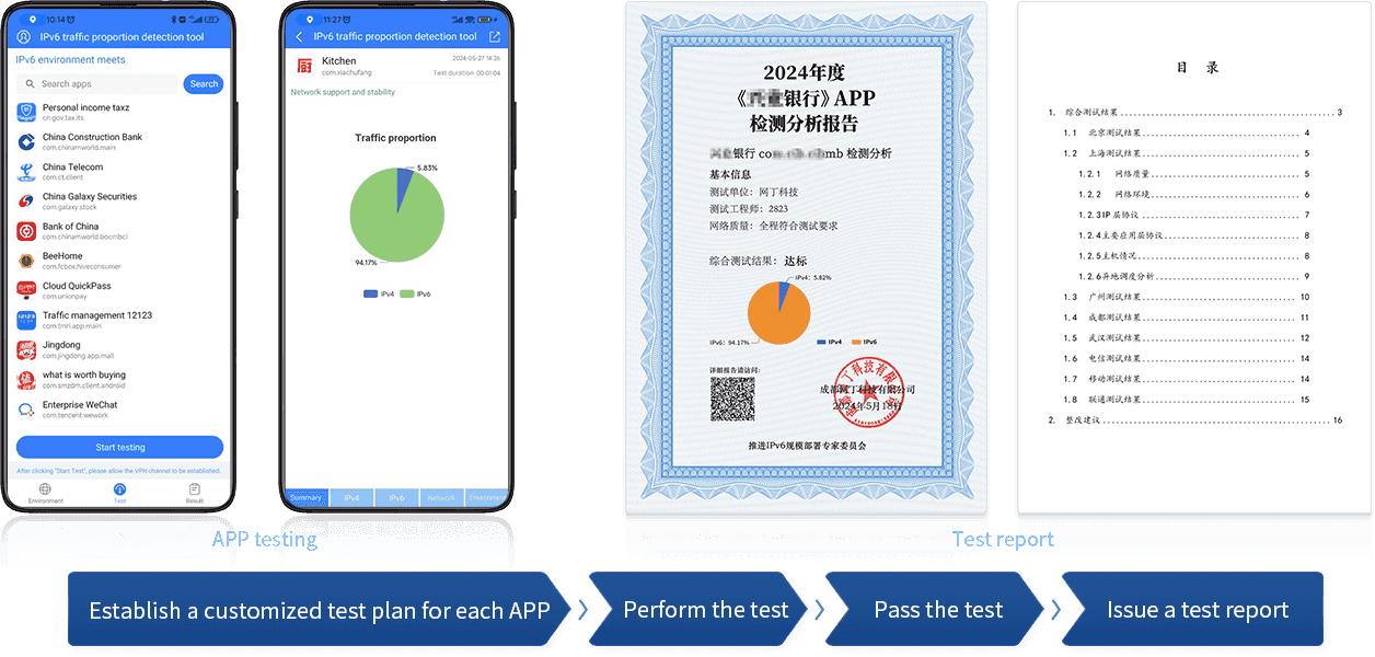 According to the national standard testing standards and testing procedures, we provide users with professional APPIPV6 support evaluation and provide accurate and authoritative test results.