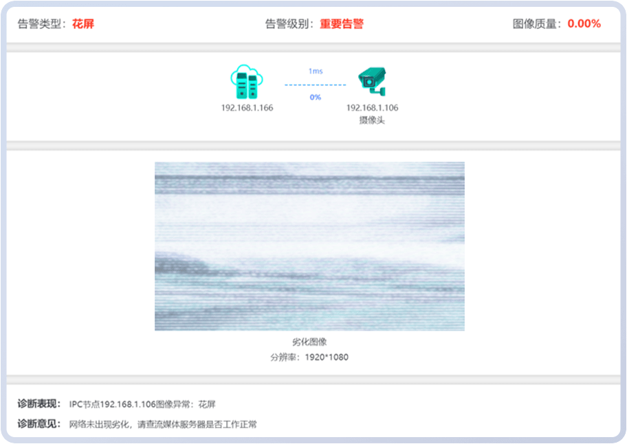 视频调取、视频流畅度以及视频图像质量等问题难以快速发现,主要依靠人工监测或轮询,监控效率低,海量摄像头的质量管理面临巨大挑战。