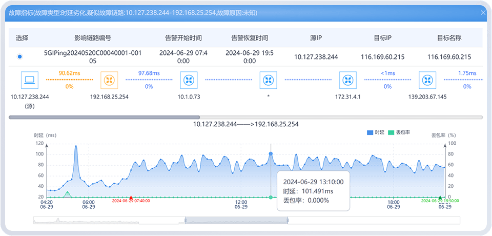 通过AI算法,自动感知5G专网、运营商专线和企业内网的劣化故障,实现自动定位定界。不仅大大提升了修障效率,也避免了推诿扯皮。