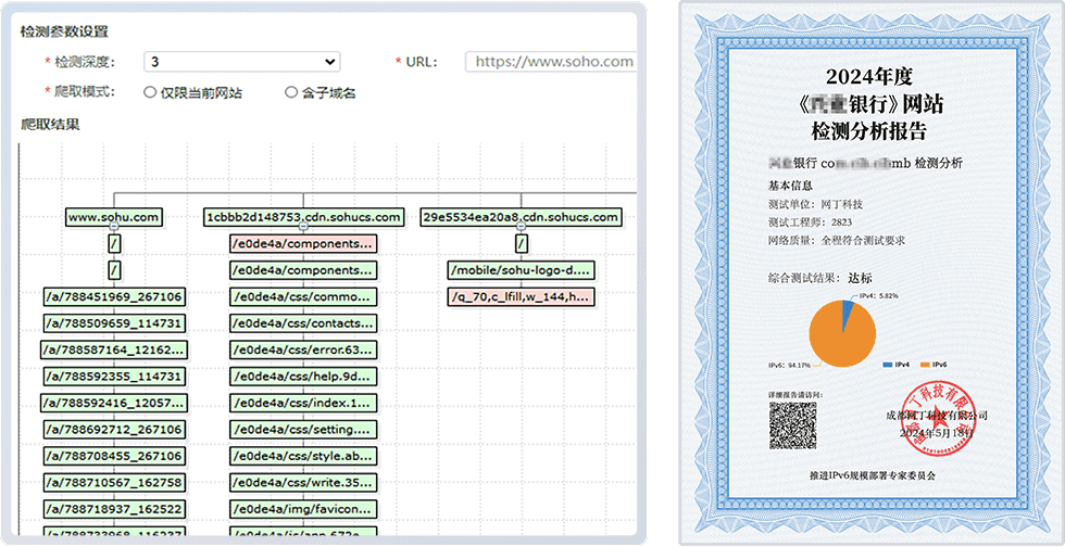 公司是工信部、推进IPv6规模部署专家委员会指定网站IPV6检测工具提供方,检测准确性已通过工信部、推进IPv6规模部署专家委员会认证。